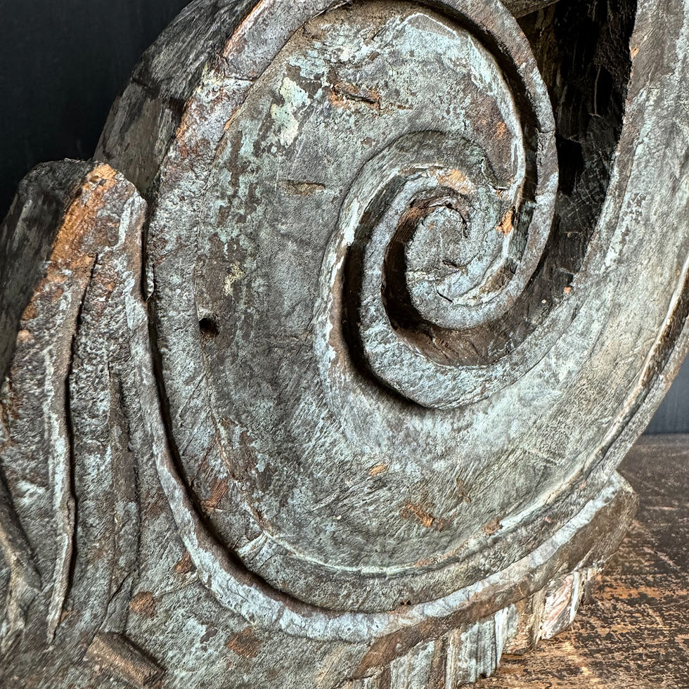 A beautifully crafted French 19th Century decorative wooden corbel, with a graceful scroll design, featuring a breathtaking shade of light blue paint from the past that adds an exquisite charm to its appearance making this piece a truly captivating addition to any space. Size: 39x33cm